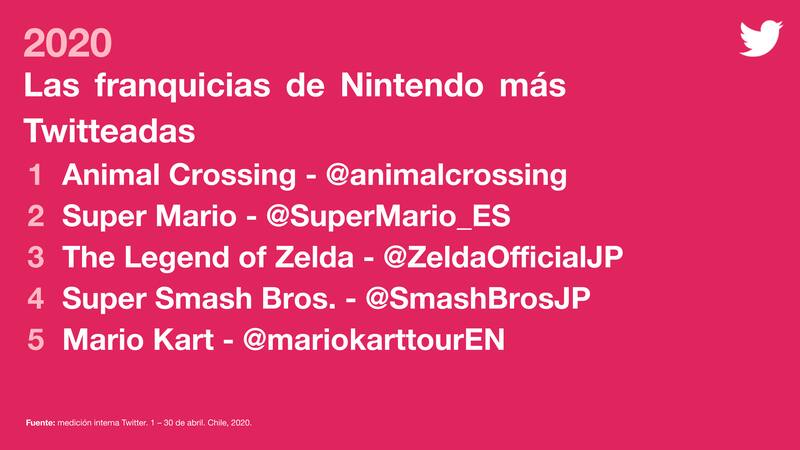 En la medición realizada desde el 1 al 31 de abril, Twitter concluyó que Animal Crossing fue la franquicia que generó más tweets en este lado del mundo. Relegando así a títulos como Fortnite y Final Fantasy a puestos inferiores.