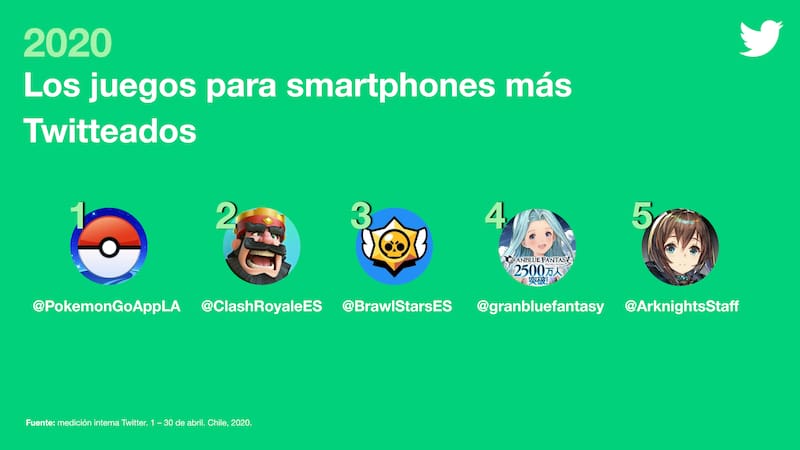 Ahora, ya fuera del mundo de las consolas, los juegos para smartphones que más tweets generaron en Chile durante abril son Pokémon Go, Clash Royale y Brawl Stars.