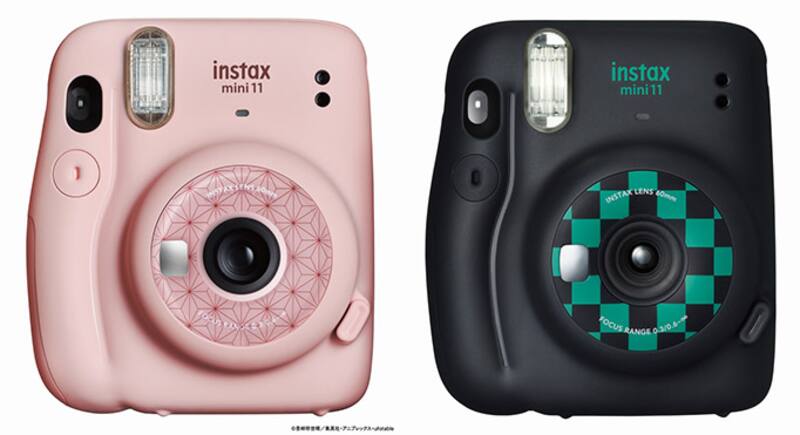Las dos cámaras corresponden al modelo Instax Mini 11 y mientras una tiene un diseño que se asemeja al kimono de Nezuko la otra cuenta con un diseño similar al de la vestimenta de Tanjiro.