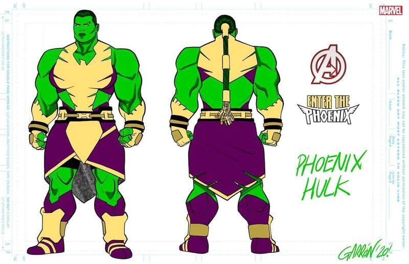 Por supuesto, el vínculo con la Fuerza Fénix implica toda una transformación por lo que para esta historia Garrón tuvo que diseñar nuevos atuendos para algunos reconocidos héroes de Marvel.