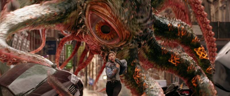 Ante el inminente peligro, el héroe interpretado por Benedict Cumberbatch se pone su capa y salta a la acción. Inicialmente Strange rescata un bus donde estaba America Chavez y no tarda en reconocer a la joven a partir de su pesadilla. Pero en ese minuto no hay tiempo para conversaciones y Doctor Strange tiene que cortar por la mitad el bus que fue arrojado por Gragantos para evitar ser aplastado.