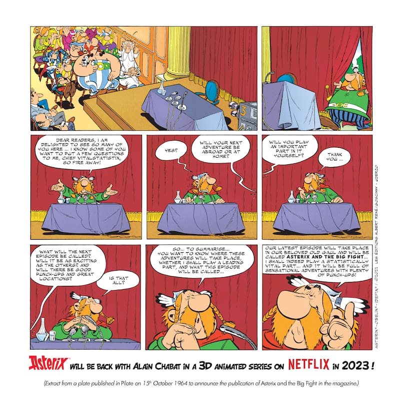Este proyecto será la primera serie animada limitada de Astérix y con una propuesta de animación 3-D buscará adaptar a la historia de Astérix and the Big Fight, un relato donde “los romanos, después de ser constantemente avergonzados por Astérix y sus socios de la aldea, organizan una pelea entre jefes galos rivales e intentan arreglar el resultado secuestrando a un druida junto con su poción mágica muy necesaria”, según explica Netflix.