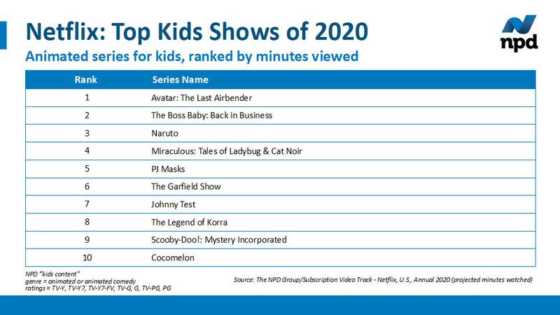 A la vez, muestra un predilección por las series más antiguas por parte de los usuarios, ya que del top ten, seis se estrenaron en 2010 o con anterioridad, incluido el caso de Avatar, siendo Back in Business la producción más reciente del listado, con una fecha de estreno de 2018.