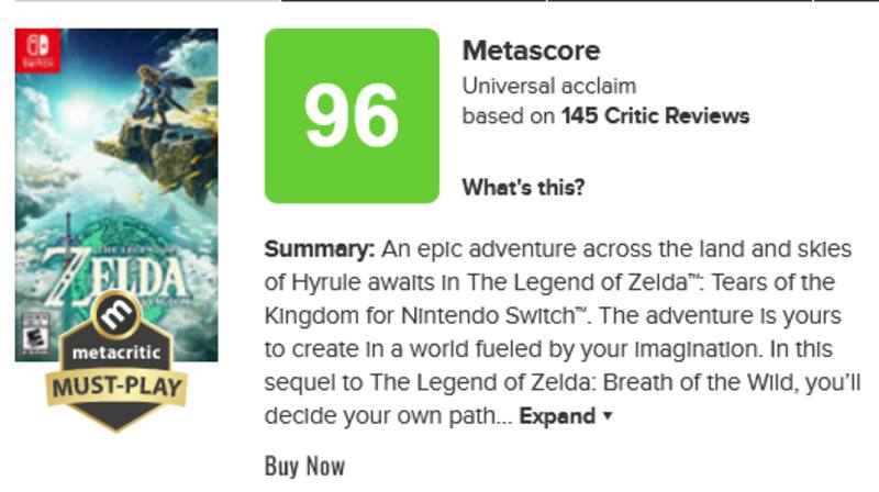 La propuesta de RPG, basada en el sistema del clásico juego de mesa de Calabozos y Dragones, acumula una puntuación de 97 en base a las críticas publicadas en los medios, mientras que el juego de Nintendo alcanzó una puntuación de 96.