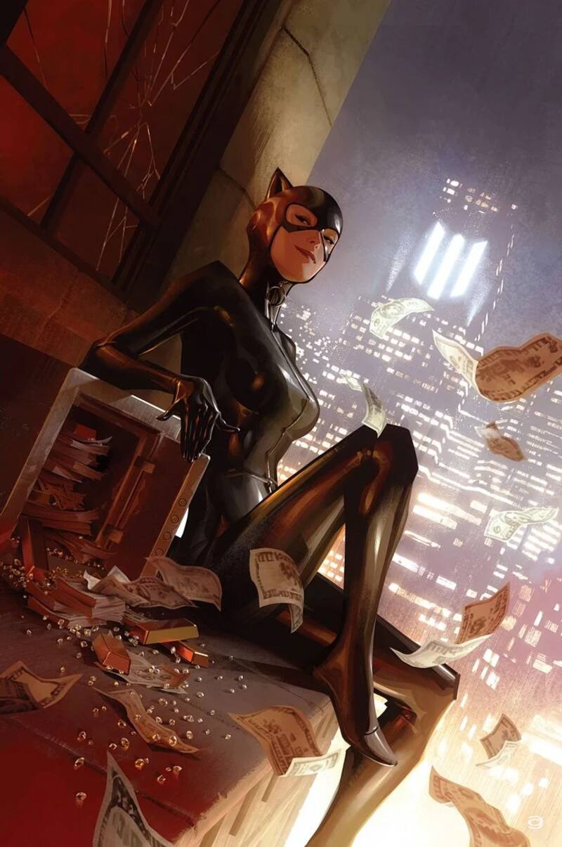 “Tres villanos, un Caballero de la Noche y un atraco mortal que salió mal”, dice la descripción del cómic. “Catwoman, Riddler y el Pingüino unen fuerzas para llevar a cabo el mayor robo en la historia de Gotham City. ¿Y su premio? ¡Un artefacto misterioso e invaluable en posesión secreta de Bruce Wayne! Pero, a medida que se desarrollan los acontecimientos, ¿qué diversión tiene un atraco sin una traición o dos?”.