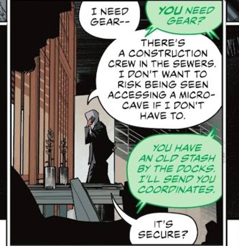 Pero en la historia de “The Jury” en Detective Comics #1041, Bruce simplemente no podía acceder a esas mini cuevas y tras su breve paso por la cárcel necesitaba urgente un traje para convertirse en Batman, por lo que Oracle le envió a revisar un viejo escondite que había habilitado cerca de los muelles.