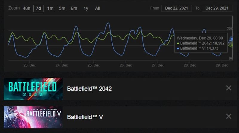 Es así como el juego en los últimos días tiene varios cientos de usuarios menos que Battlefield V, según las cifras de Steam Charts, y al momento de realizar esta nota Battlefield 2042 contaba con 10.582 usuarios, mientas que Battlefield V tenía 14.373.