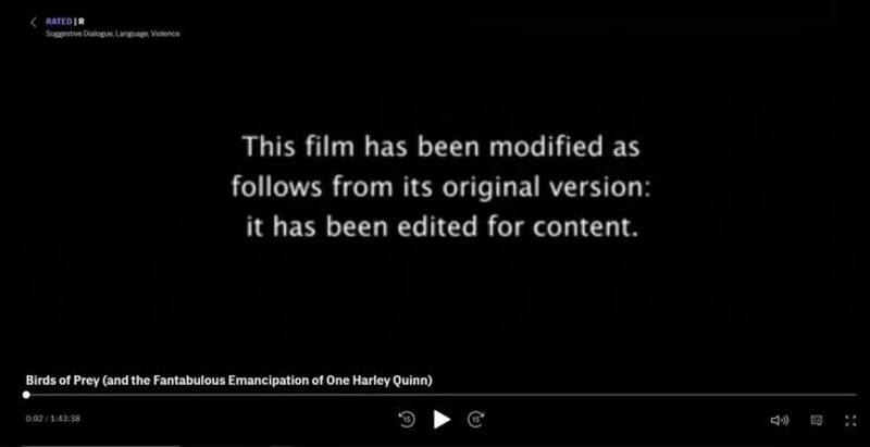 Si bien Birds of Prey ha estado disponible en HBO Max desde la llegada del servicio a regiones como Latinoamérica, actualmente no está claro cuándo se implementó este cambio y, tal y como reporta Comicbook, por ahora solo aparece una advertencia antes de la reproducción de la película.