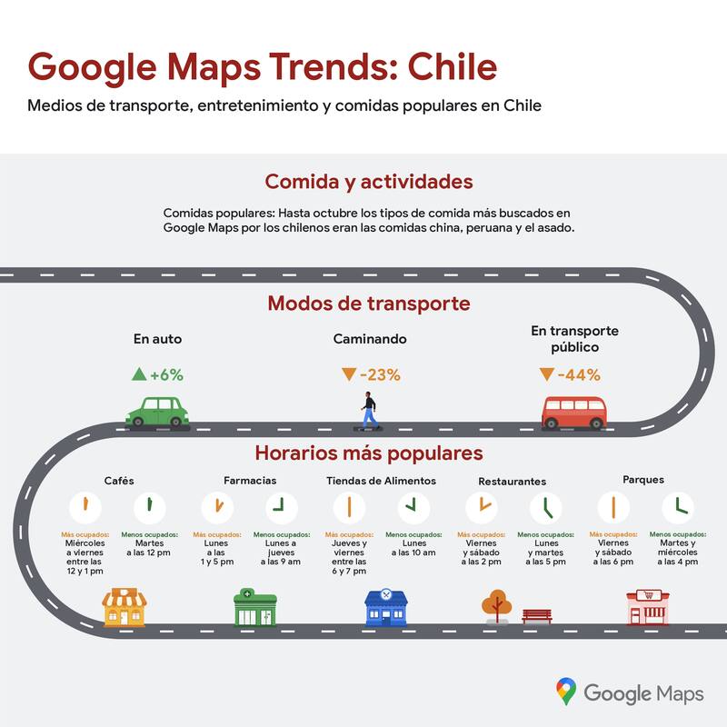 En ese escenario, Google decidió compartir un detalle de las tendencias que ha registrado en el comportamiento de los chilenos entre marzo y octubre de este año mediante Google Maps.