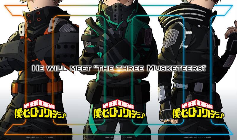 Son tres imágenes que fueron compartidas a través de enlaces por las cuentas de Twitter de la serie de anime, de la película y la del manga, y que al ser unidas muestra a Midoriya, Bakugo y Todoroki con trajes completamente nuevos.
