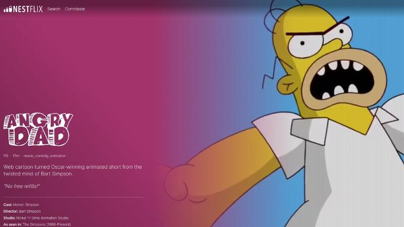 Así, al navegar por Nestflix pueden encontrar a un montón de películas o series que han aparecido en Los Simpson como Papá Enojado y el Show de Tomy y Daly, pasando por Philbert, Birthday Dad y Horsin’ Around del mundo de BoJack Horseman, hasta el programa de Woody de Toy Story 2.