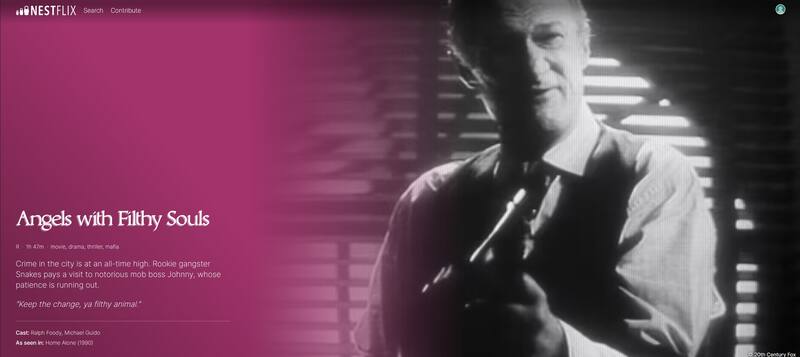 Lamentablemente, como ninguna de esas producciones es real, no se pueden ver. Sin embargo, la premisa de Nestflix permite que las visualicen con varios detalles que incluyen a su elenco además de la producción que las presentó y hasta fotos en el caso de que existan. De hecho, la plataforma incluso sugiere títulos similares y cuenta con un buscador.