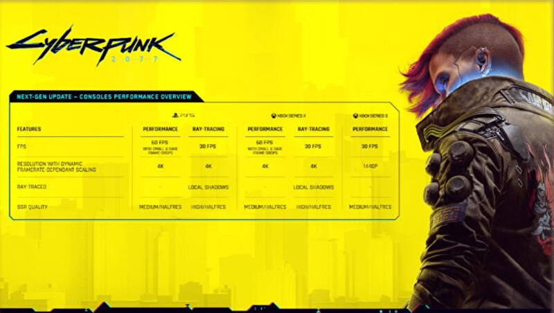 “Con la actualización, Cyberpunk 2077 aprovecha la potencia adicional de la última generación de hardware de consola, lo que permite funciones de trazado de rayos y 4K con escalado dinámico, tiempos de carga más rápidos y una variedad de otras mejoras visuales y técnicas, además de utilizar los disparadores adaptativos del controlador DualSense y las funcionalidades de retroalimentación háptica”, detalló CD Ptojeckt Red.