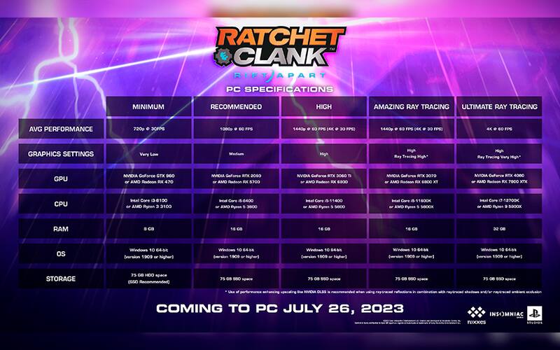 Por Claudio PortillaDan a conocer los requisitos mínimos y recomendados de Ratchet & Clank: Rift Apart en PC