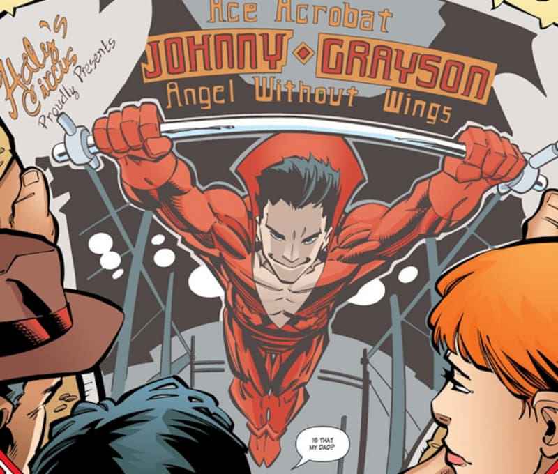 Como parte de esa misma saga también se explica que el traje estrambótico de Dick es un homenaje a un traje circense que su propio padre utilizó.