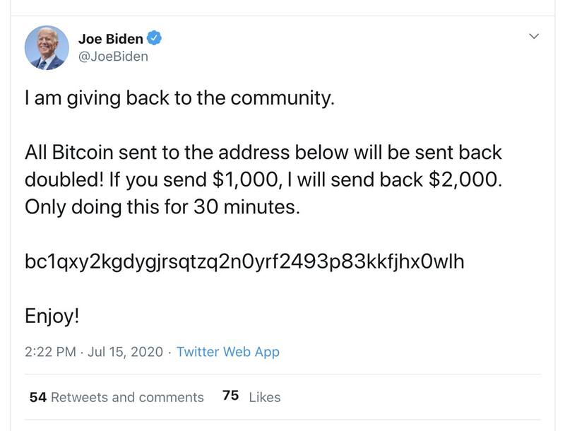 “Voy a devolver a mi comunidad debido al COVID-19. Todo el Bitcoin que sea enviado a mi dirección será duplicado. Si envías $1000, te enviaré $2000″, decía parte del mensaje.
