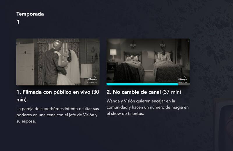 Sin mayores ceremonias y solo como una actualización en Disney Plus que fue descubierta rápidamente por los fanáticos, se estableció que el primer episodio de WandaVision se titula “Filmada con público en vivo” (”Filmed Before a Live Studio Audience” en inglés), mientras que el segundo capítulo se llama “No cambie de canal” (”Don’t Touch That Dial” en inglés).