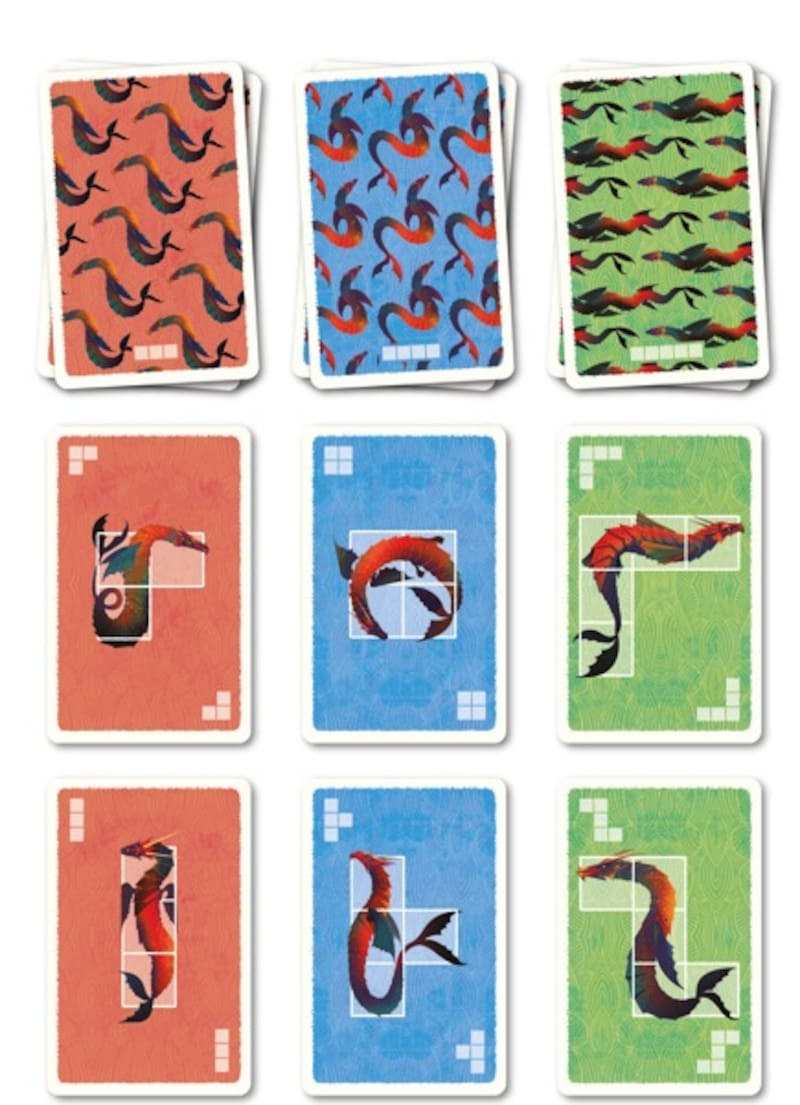 ¿Y de qué trata? Lo describen como un juego familiar, de mecánicas sencillas, algo alejado de la obra de Simone Luciani, pero que cabe perfectamente dentro de la propuesta de los juegos de Fractal. Es un juego de control de territorio en donde contaremos con un tablero central dividido en cuatro reinos marinos, y donde los jugadores tendrán que ir colocando sus dragones, a través de cartas que traen formas al estilo Tetris. Esa forma determinará cómo tendrán que posicionarse los diferentes segmentos de cada una de las criaturas que controlamos. Los jugadores tendrán que ir cumpliendo patrones, y cuidándose de no colocarse junto a los dragones rivales, para no tener que entregarles tesoros.