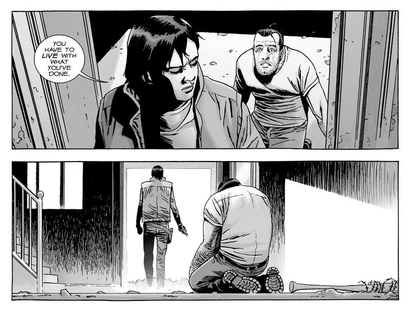 Kirkman relató que los argumentos de Adlard finalmente cambiaron su parecer y, como tampoco estaba completamente convencido de matar a Negan, decidió modificar el rumbo de la historia.