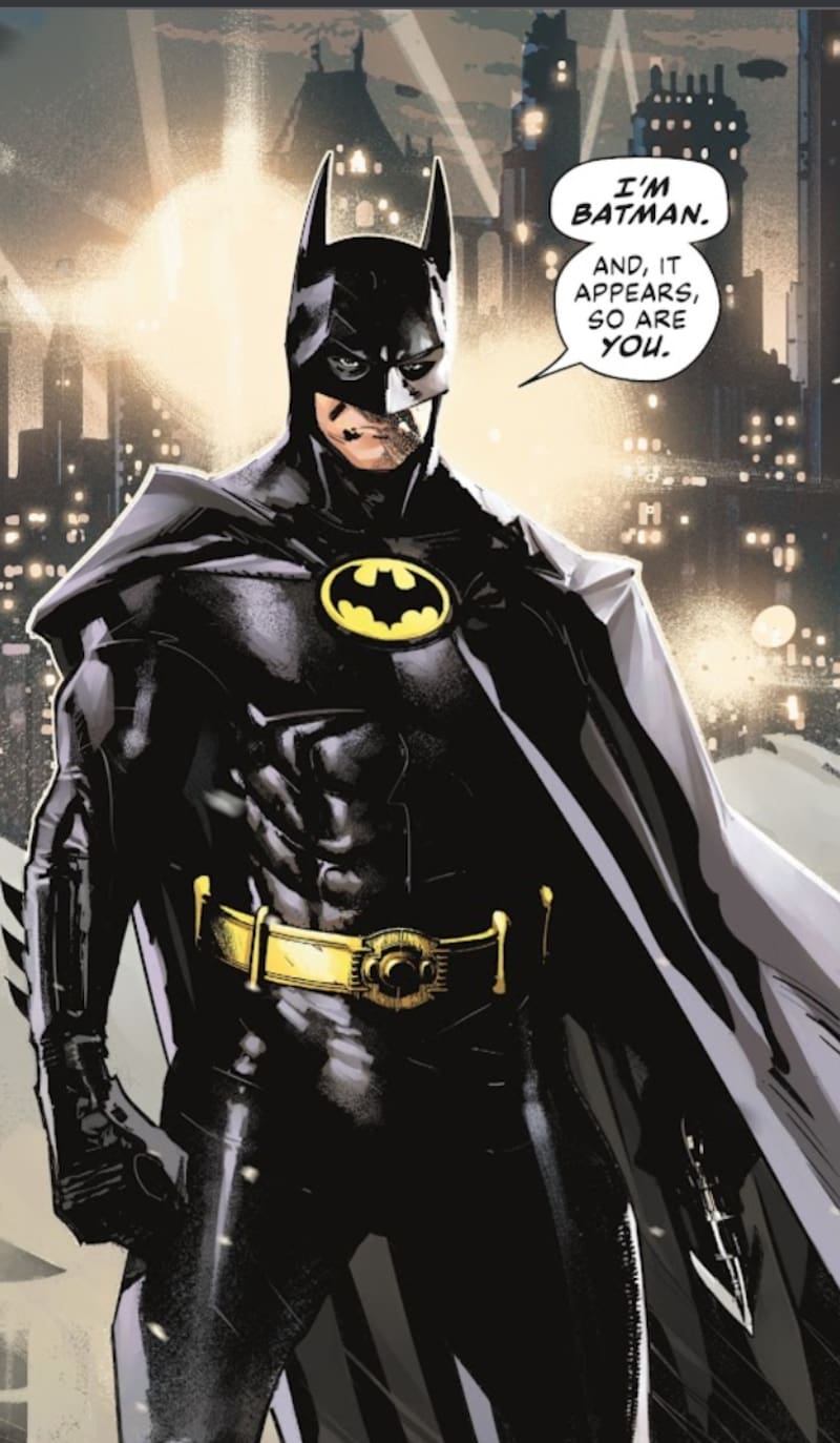 Pero las cosas no terminan allí y tras su breve interacción con el Batman de Keaton, el Batman central de los cómics sigue forzosamente su travesía Multiversal y pasa por otros mundos que evocan, por ejemplo, al Batman de Adam West y Batman: La Serie animada. Todo además de célebres cómics como Kingdom Come y The Dark Knight.