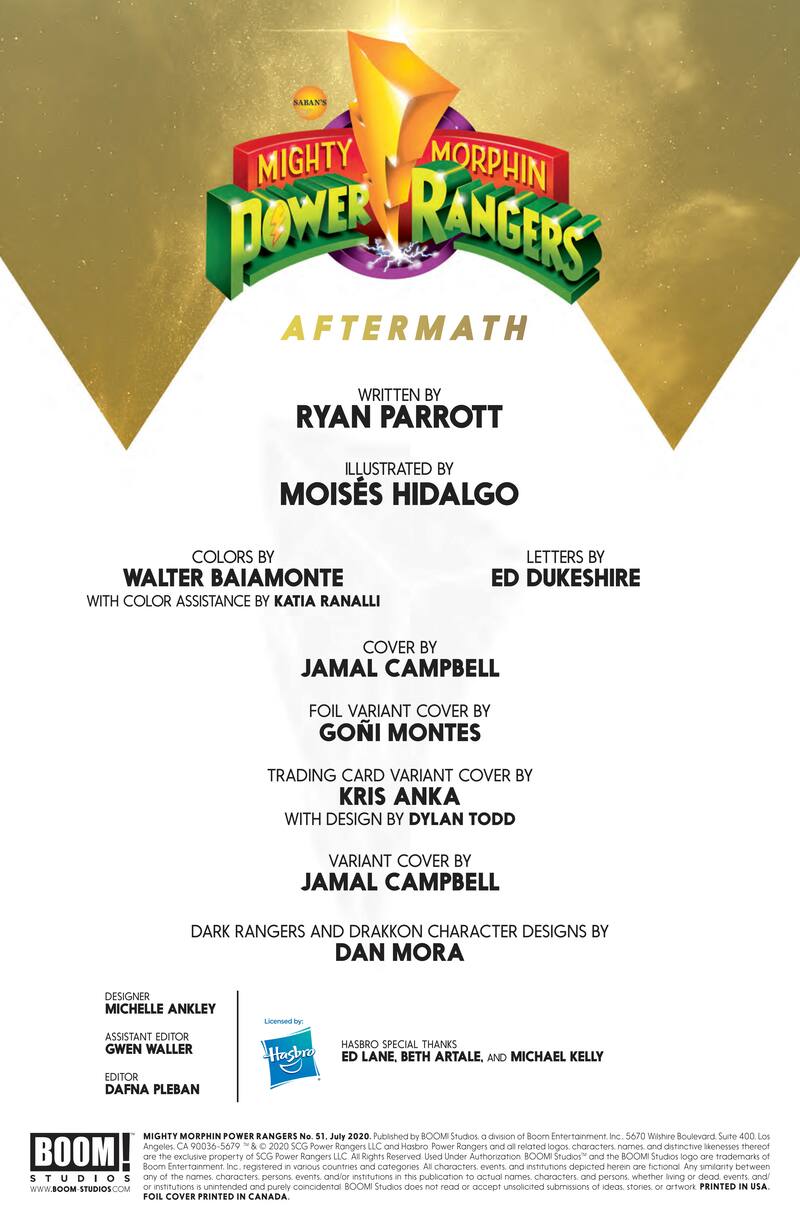 Mighty Morphin Power Rangers #51 tendrá un guión de Ryan Parrott y su descripción advierte que “[SPOILER] ha regresado ... ¡y los efectos derivados enviarán ondas de choque a través de cada Power Ranger! Ahora la frágil alianza entre los Mighty Morphin Power Rangers y los Omega Rangers tal vez será permanentemente... destrozada”.