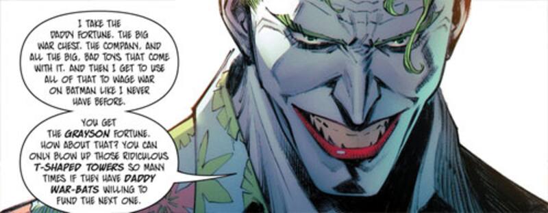 Como parte de su plan para preparar a la gran guerra, el Joker ha estado convocado a diversos villanos. Uno de ellos es Deathstroke, quien inicialmente no está dispuesto a ser parte. Sin embargo, todo cambia una vez que el Joker le cuenta un chiste: “sobre el billonario que corre alrededor vestido de un murciélago”.