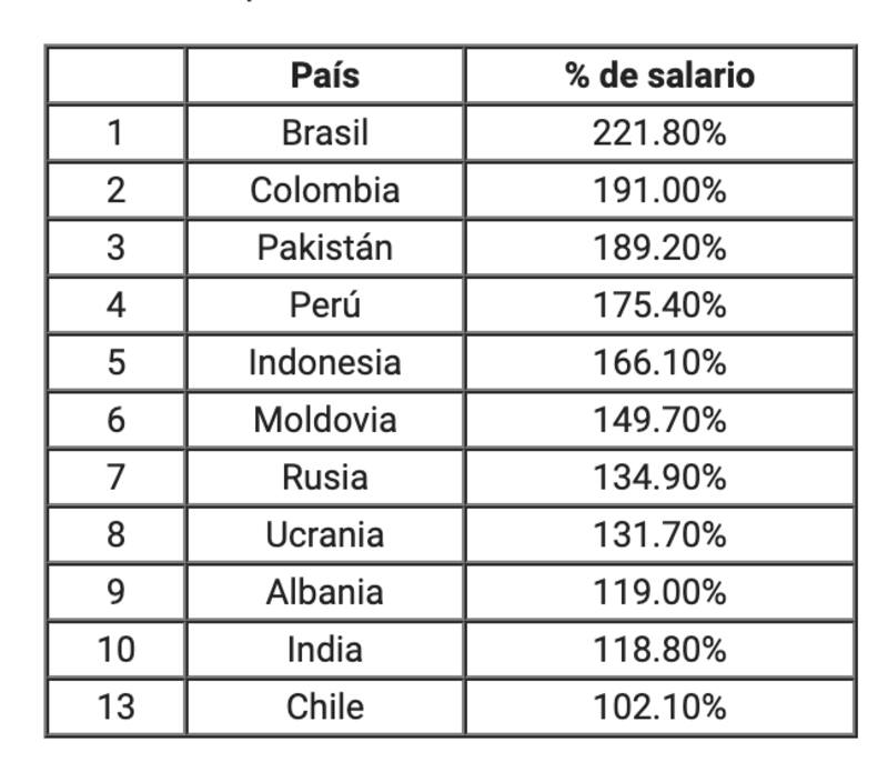 Pero los costos no son los únicos datos que pone sobre la mesa Paxful y para poner en perspectiva esas cifras, el estudio también contempla cuánto tendría que gastar una persona para comprar la consola tomando como referencia al salario mensual medio de los respectivos países.