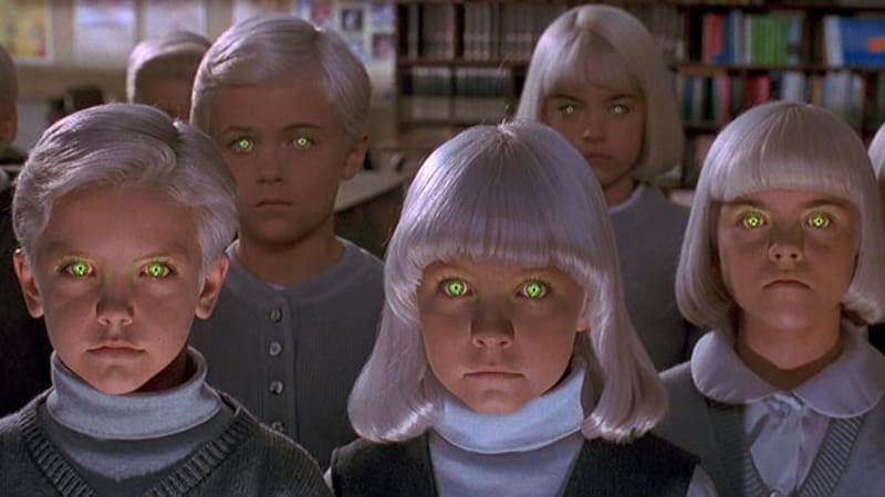 En aquella historia, cada mujer en edad fértil está embarazada en un pequeño pueblo luego de un incidente de origen desconocido que incluye a un objetivo no identificado. Años después, los niños crecen de forma acelerada y tienen la particularidad de contar con ojos dorados inusuales y piel pálida.