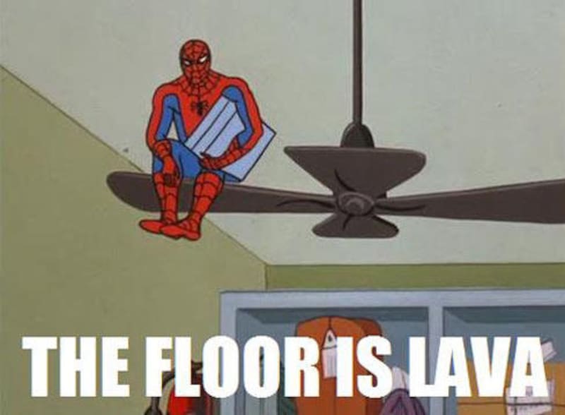 La viralidad meme de la red ha difundido ampliamente el juego conocido como “El Suelo es Lava” (The Floor is Lava), una experiencia en el que las personas fingen que el piso es lava, requiriendo que inmediatamente se suban a muebles o cualquier otro objeto. Si a los cinco segundos tus pies siguen en el suelo, perdiste.