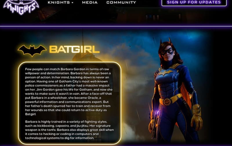 Gotham Knights cambió la biografía de Batgirl en su sitio web oficial ante las críticas que surgieron por su primera redacción de la historia de Barbara Gordon. Si bien desde un principio se ha planteado que este videojuego será una nueva interpretación del mundo de los cómics de DC, varios fanáticos se molestaron porque en la descripción original de la heroína se daba a entender que se había recuperado de una grave lesión solo por su voluntad.