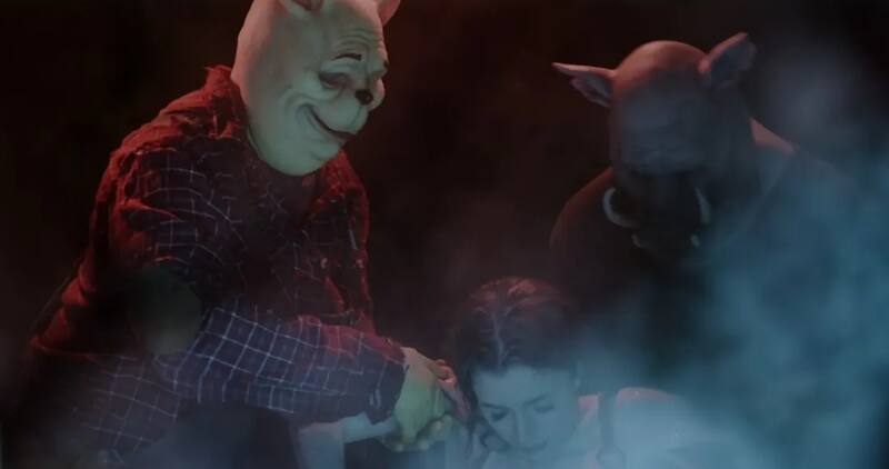 “(Un personaje) se lo está pasando bien y luego Pooh y Piglet aparecen detrás de ella, le inyectan cloroformo, la sacan del jacuzzi y luego le pasan un auto por encima de la cabeza”, dijo el director. “Da miedo, pero también hay fragmentos divertidos porque hay tomas de Winnie the Pooh en un automóvil y los ves con sus orejitas detrás del volante avanzando lentamente allí (para matarla)”.
