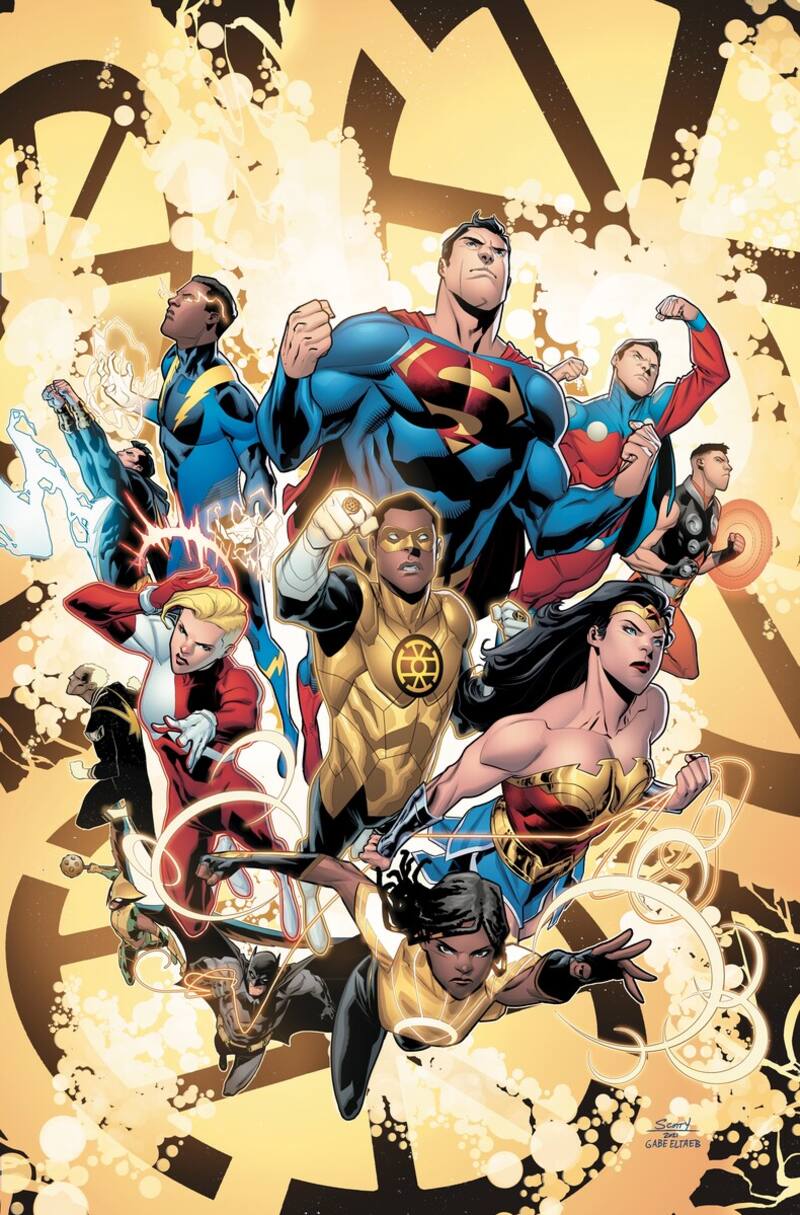 “Mil años en el futuro, una Legión de Superhéroes se une para dedicar sus vidas a recuperar la gran era de los héroes del siglo XXI. Cuando los héroes descubren que la realidad está cayendo en una gran oscuridad en ambos momentos simultáneamente, la Liga de la Justicia y la Legión de Superhéroes deben unirse para detenerlo todo. Pero, ¿cuál es la conexión entre los secretos de los nuevos Gold Lanterns y la llegada de la Gran Oscuridad?”