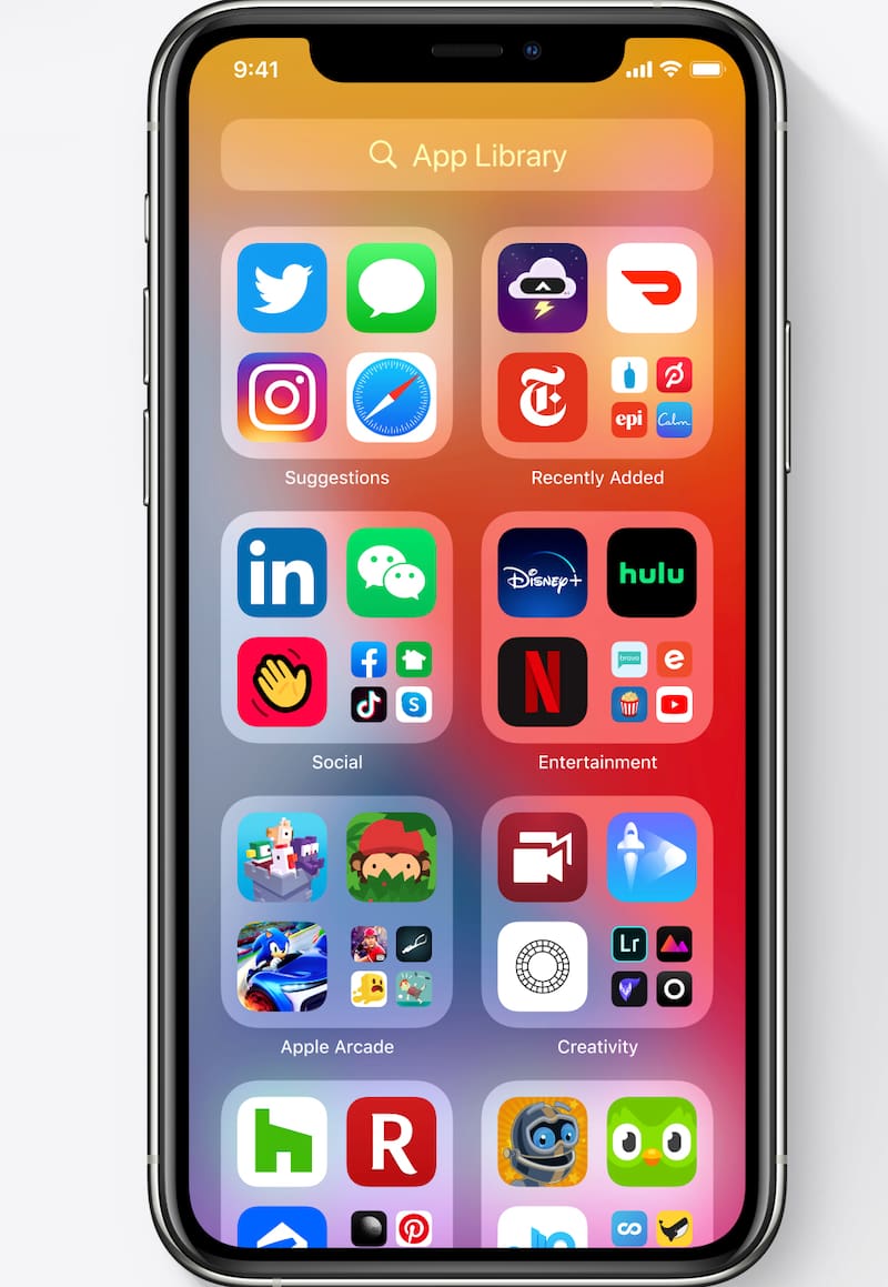 Apple también anunció que iOS 14 contará con una función llamada Biblioteca de aplicaciones. Esta característica ordenará a automáticamente todas tus aplicaciones en lo que la compañía define como una “vista simple y fácil de navegar”.
