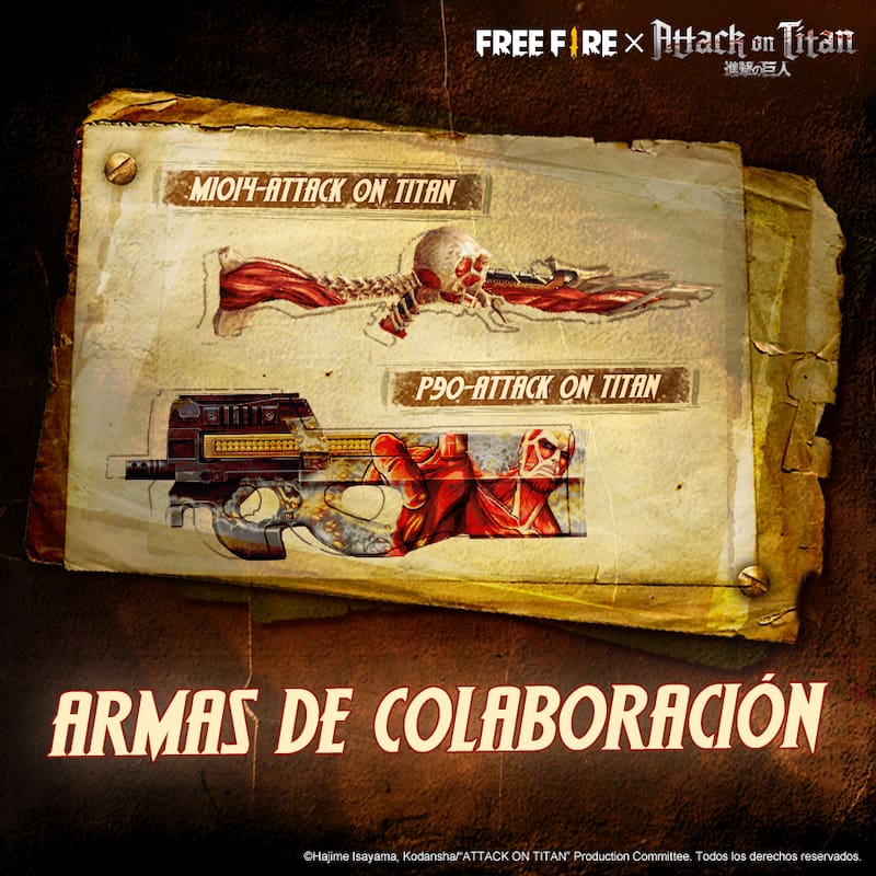 El battle royale para móviles Free Fire dio inicio hoy a una colaboración con el anime Shingeki no Kyojin, también conocido como Attack on Titan, que se extenderá hasta abril.