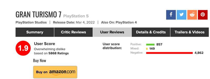 Gran Turismo 7 es el juego de Sony con peor evaluación por parte de los usuarios en Metacritic