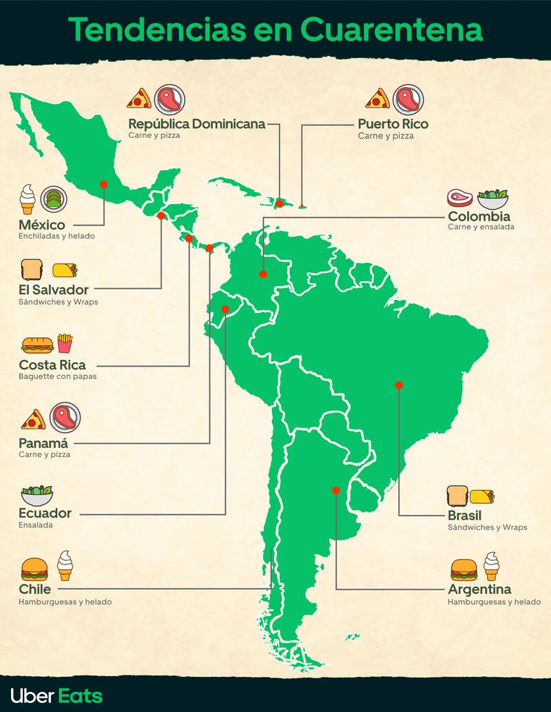 La plataforma de envío de comida Uber Eats presentó un reporte que da cuenta de las preferencias de sus usuarios latinoamericanos durante la pandemia de COVID-19.