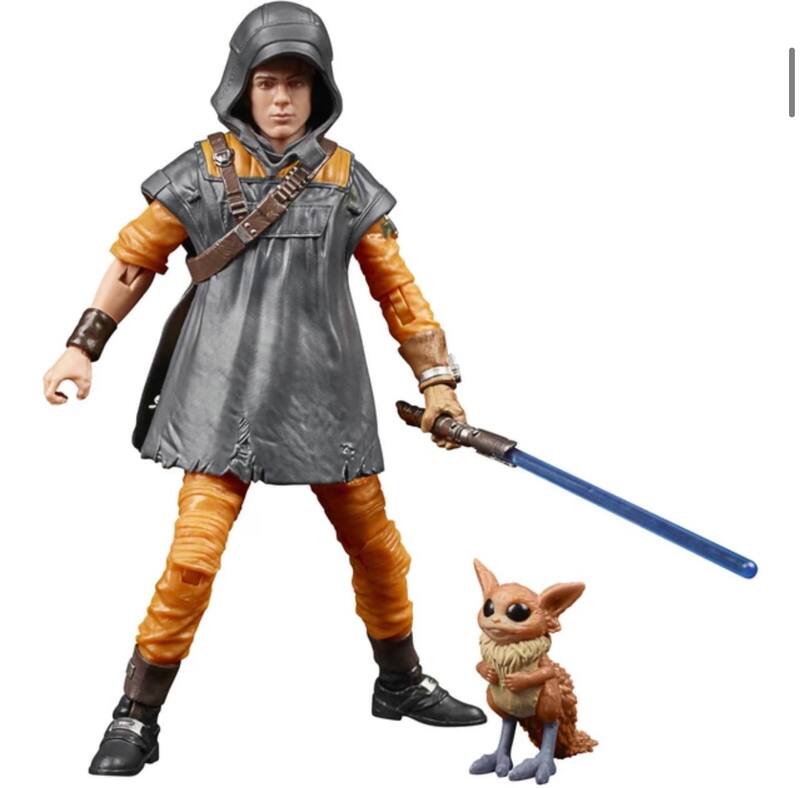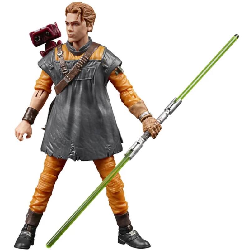 De la misma manera, su compañero el androide BD-1 también viene en una variante roja. Entre los accesorios se cuentan dos tipos de sables de luz, uno simple y el otro de doble hoja, un holocrón Jedi y una capucha para el poncho. Junto con todo eso, también viene incluida una criatura bogling a modo de acompañante.