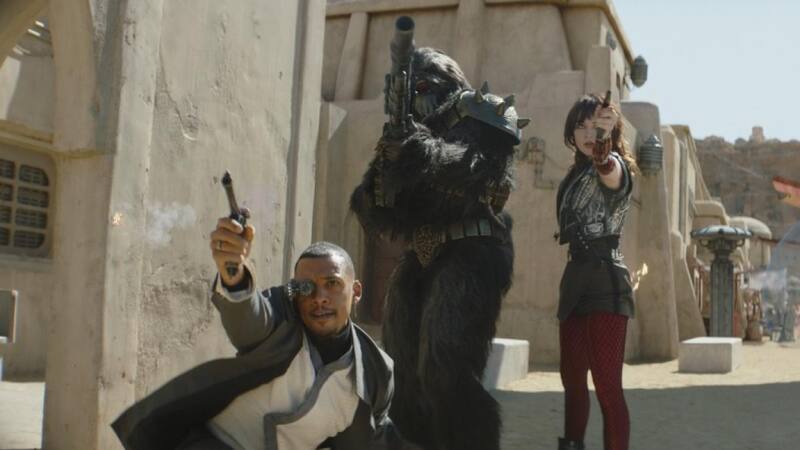 Como recordarán si ya vieron el último episodio de The Book of Boba Fett, durante la batalla contra los aliados del Sindicato Pyke hay un momento en que Black Krrsantan y dos de los humanos con modificaciones tecnológicas están involucrados en un tiroteo.