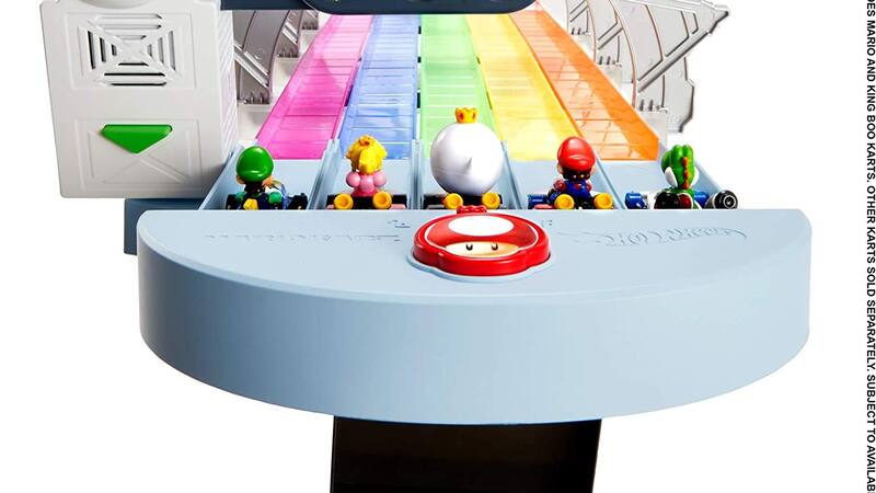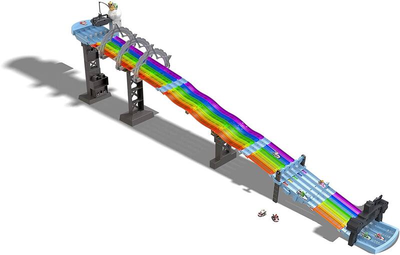 Hot Wheels Mario Kart Rainbow Road Raceway será el nombre que tendrá esta pista, la cual vendrá acompañada por karts de Mario y King Boo, aunque en las imágenes dadas a conocer también se pueden observar de Luigi, Yoshi y Peach.
