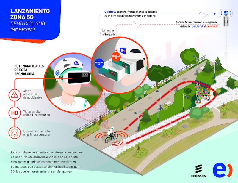 Para finalizar, en la actividad de lanzamiento de la “Zona 5G” se realizó una prueba experimental que consistió en la conducción de una bicicleta, donde el ciclista chileno Sebastián Vásquez, no veía la pista, siendo guiado únicamente a través de un streaming en 5G mediante el cual se mostraba la ruta en tiempo real.