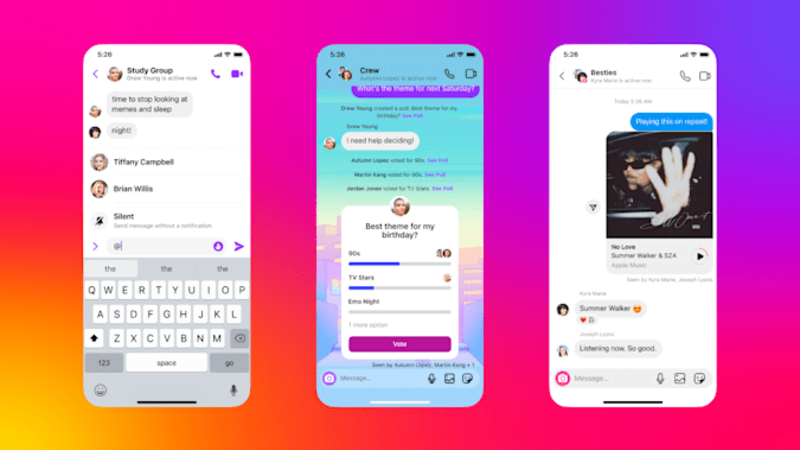 Instagram también agregará al atajo @Silent, similar a la actualización que presentó Messenger a principios de esta semana. Al agregar @Silent a los mensajes, permite que se entreguen sin activar una notificación. Para los chats grupales llegará una función de encuestas, por lo que no solo estarán disponibles en las historias.