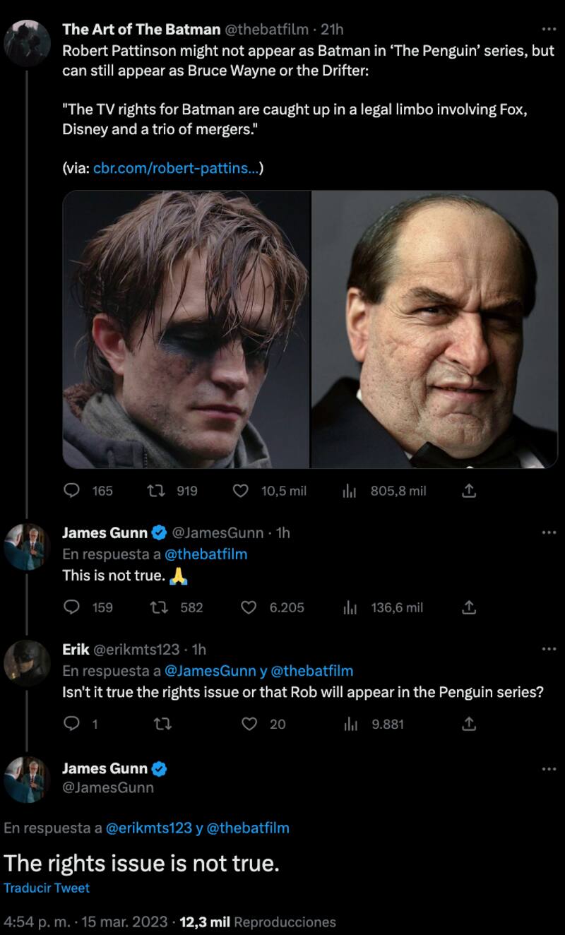 Por supuesto, los comentarios de Gunn no confriman ni descartan una aprición de Pattinson como Batman en la serie del Pingüinio, pero establecen que aquello sería posible desde una perspectiva legal.