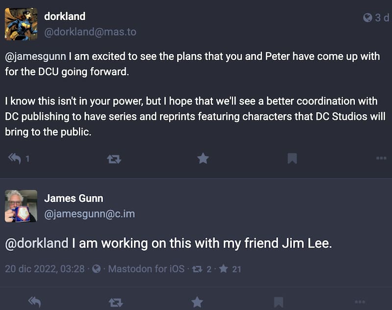 A través de la red social Mastodon el director y co-CEO de DC Studios confirmó que quiere conseguir una mejor mejor coordinación entre DC Studios y DC Comics.