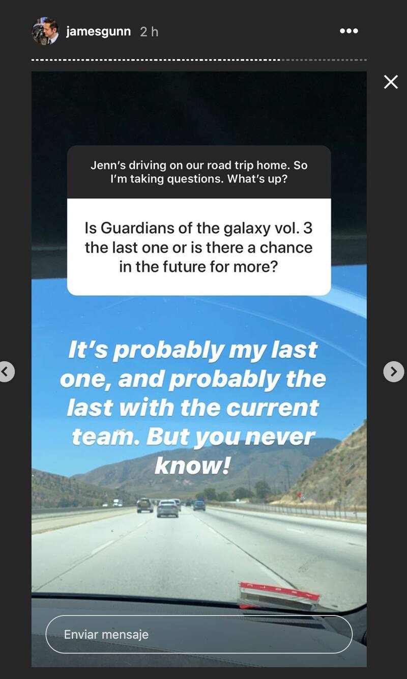 En una sesión de preguntas y respuestas en las historias de su cuenta de Instagram, Gunn fue consultado respecto a sus planes a futuro con la franquicia de los Guardianes de la Galaxia.