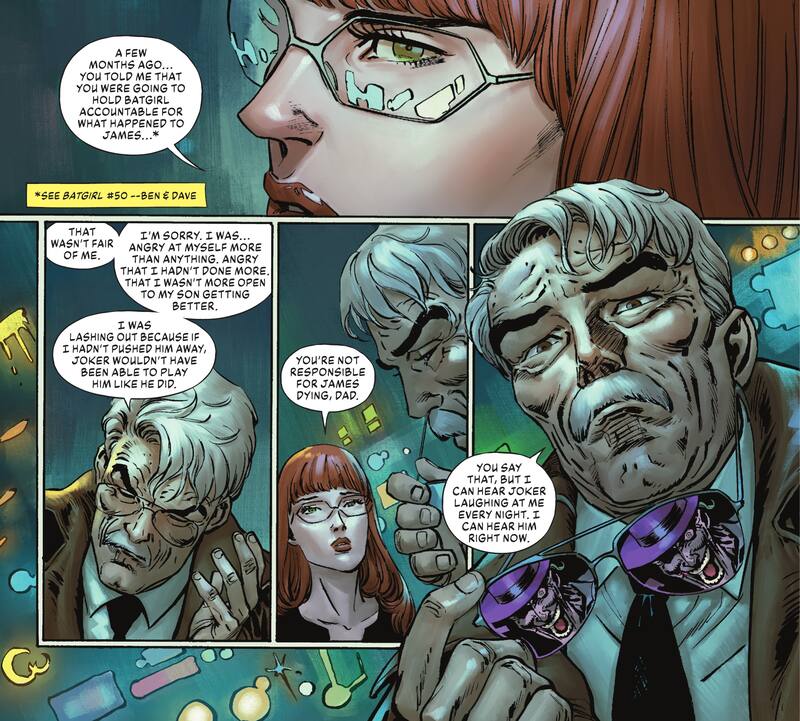 Por supuesto, si leyeron la serie regular más reciente de Batgirl, la confesión de Jim complica uno de los últimos momentos de ese cómic. Después de todo, siguiendo la muerte de James Gordon Jr, el ex-Comisionado de la Policía de Gotham le prometió a Barbara que se vengaría de Batgirl por la supuesta responsabilidad de la vigilante en la muerte de su hijo.