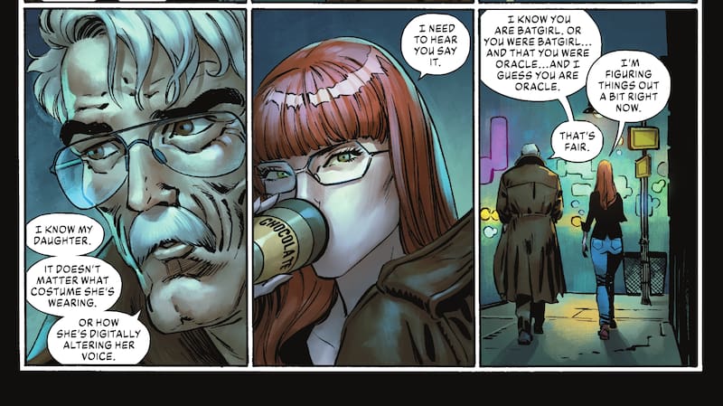 Como Oracle había expresado que tenía dudas sobre esta misión, Gordon decidió emplazar a Barbara y preguntarle si en realidad no estaba preocupada por su padre, dejando en claro que está al tanto de que su hija trabaja con Batman.