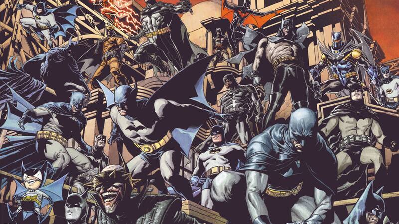 La portada creada por Quesada involucra a decenas de versiones de Batman, incluyendo a la versión televisiva de Adam West, el de historias como La Caída del Murciélago, Batman Beyond, Flashpoint Batman, Batmito y el villano Batman Que Ríe, entre muchos otros.