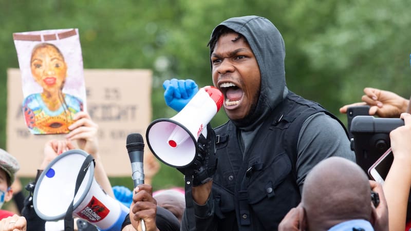 El actor conocido por interpretar a Finn en la nueva trilogía de Star Wars tomó un megáfono y habló frente a los cientos de manifestantes que se habían congregado en el Hyde Park para protestar contra el racismo siguiendo las manifestaciones que comenzaron en Estados Unidos tras el asesinato de George Floyd.