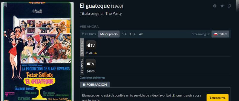 Al mismo tiempo, también puedes escribir su nombre en español (El Guateque) si desconoces el título original (The Party).