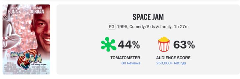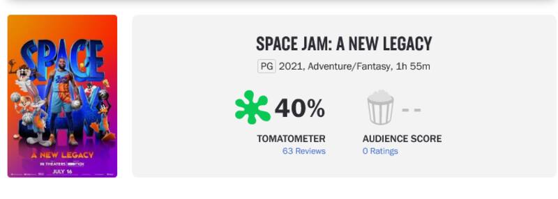 A la fecha, contando un total de 63 reseñas, la reinvención protagonizada por LeBron James solo alcanza a un 40% de críticas positivas. Es decir, se está ganando los tomates podridos.